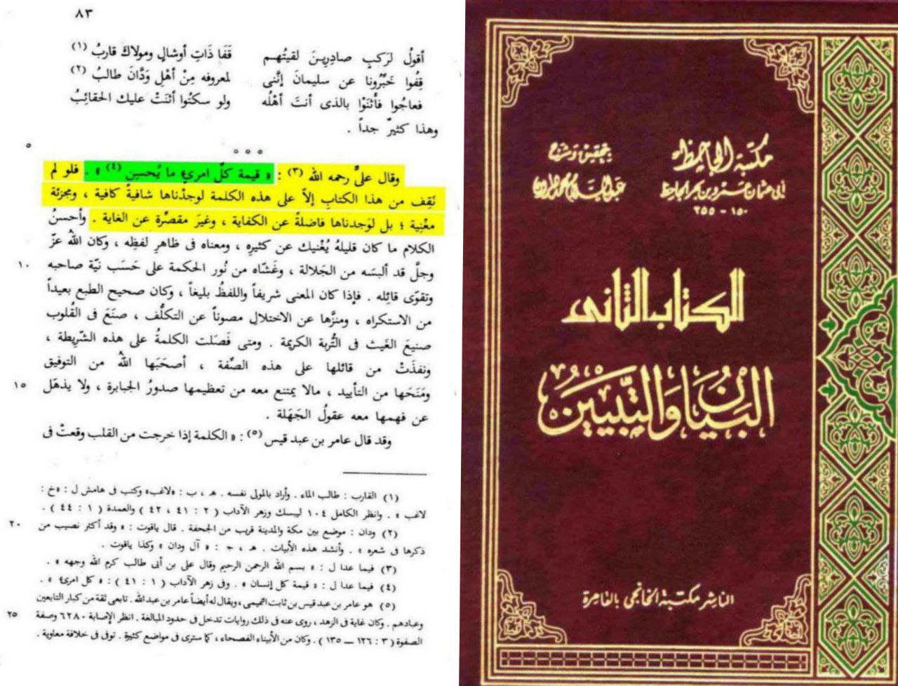 البيان والتبيين، جلد ١، صفحه ٨٣.