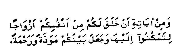 And of His signs is that He created for you, of yourselves, spouses, that you might repose in them, and He has set between you love and compassion. (ar-Rum, 30:21 )